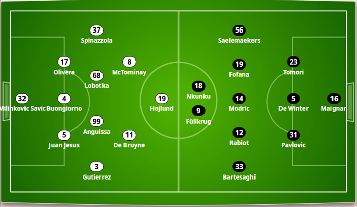 El Nápoles de Antonio Conte llega en un excelente estado de forma: cuatro victorias consecutivas en la Serie A (ante Hellas Verona, Torino, Lecce y Cagliari), incluyendo su primera portería a cero en once jornadas. Los partenopeos han recuperado la confianza y el ritmo que los situaba entre los favoritos al título. No obstante, Conte no podrá contar con cinco jugadores lesionados: Lukaku, Di Lorenzo, Neres, Rrahmani y Vergara.