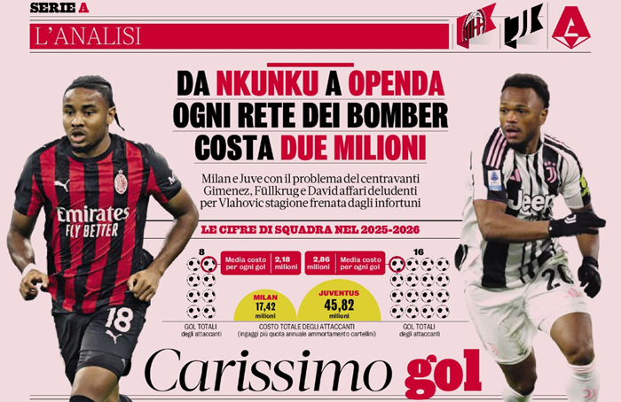 Hablemos solamente de quienes son delanteros centro por naturaleza (Giménez, Füllkrug, Vlahovic) o de quienes, a su llegada a Italia, fueron presentados como tales (Nkunku, David, Openda). Negocios que costaron millones, pero con un rendimiento, cuanto menos, discutible.