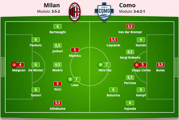 Maignan 4 (El peor) – Esta vez no salvó al Milan, sino que lo traicionó con el balón regalado a Nico Paz para el 1-0. Un par de paradas no bastan para hacerse perdonar.