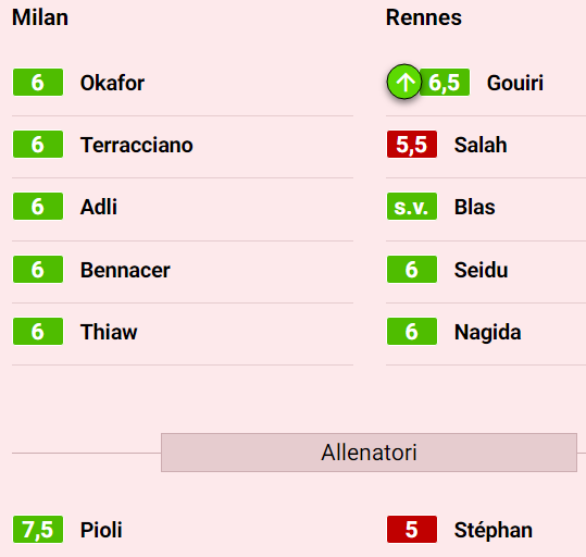 Pioli 7,5 – Puso la clasificación en el congelador, y eso contó. Bonus: su Milan lo hizo como un equipo presente ante sí mismo, concreto, capaz de interpretar el partido. El Rennes, preocupante, se borró