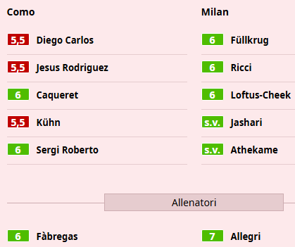 Loftus-Cheek 6 – En el campo en lugar de un cansado Leao, da cuerpo al centro del campo. En fase de cobertura se desplaza a la izquierda y choca, luego sale a la contra. Pelea y roza el gol.