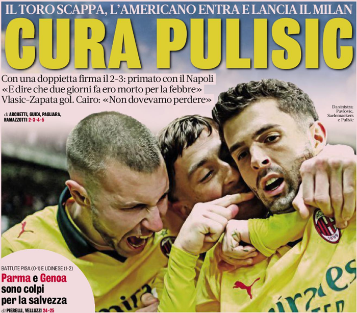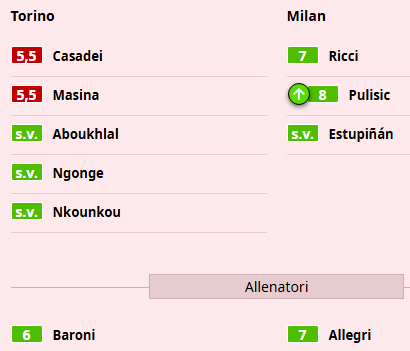 Saelemaekers 7 – Un buen centro al final del primer tiempo y otras iniciativas interesantes. En la segunda parte, desde la izquierda, pone el centro del 2-2 y aporta coraje al Milan.